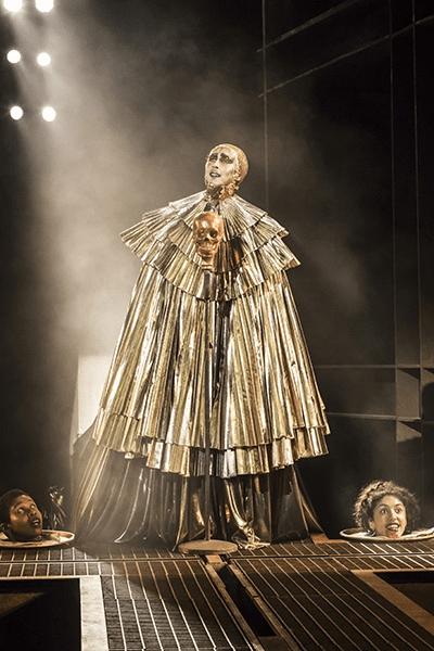 Director Timothy Sheader’s style is raw, visceral and relentless; he has a real gift for distinct memorable imagery, especially in the lead up to the Crucifixion, and each scene is attacked by his cast with boundless enthusiasm and energy. Choreography by Drew McOnie is riveting and one of my favourite things onstage, moving from righteous zeal to an almost hypnotic quality as they morph into the mob that bays to Pilate for Jesus to be crucified. Thanks to Tom Scutt’s striking design, the ensemble rock out beneath coloured dust, gold glitter, flares and flames, all of which bear a wonderful striking contrast to the mostly muted greys of the costumes of Jesus and his disciples. The crown jewels in the costume department, for me, are Peter Caufield’s King Herod, who strides onto the stage in a flowing gold cape, and David’s Thaxton’s Pilate, who looks like he’s fresh out of a rock concert, eyeliner standing out like warpaint. The set is also hauntingly skeletal, featuring a cruciform walkway and steel frames, its rugged simplicity again allowing the actors to shine and really make them the focus. Initially I found the hand held microphones a little distracting, but soon I forgot they were there, and thought they were a neat nod to the show’s origins.