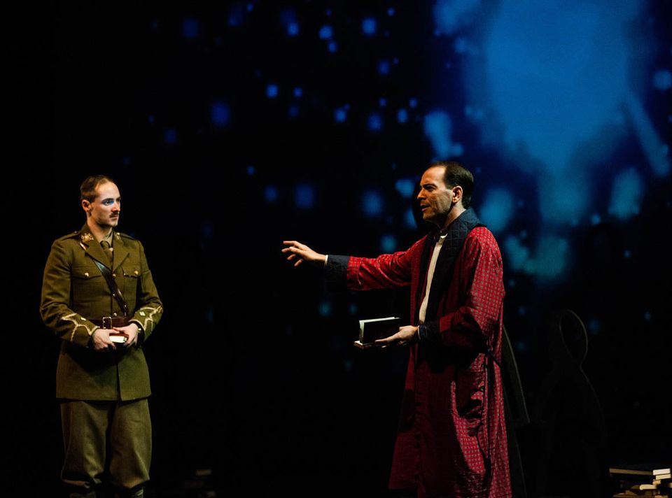 When we first meet Ben Ashton’s timid, somewhat starstruck Wilfred Owen, he shyly sneaks into Sassoon’s room to beg autographs on the latter’s latest book of poems for his mother, various relatives and himself, and later asks him to help him with his writing, and thereby initially you have a rather endearing mentor and protege relationship. Over the course of the play, that dynamic shifts subtly yet incredibly powerfully as Wilfred becomes a celebrated poet in his own right, and makes the devastating decision that we’ve been forewarned about. To watch Ben play that arc is so satisfying as he does so with such ease and depth that you’re immediately charmed by him, and that quality is relentless.