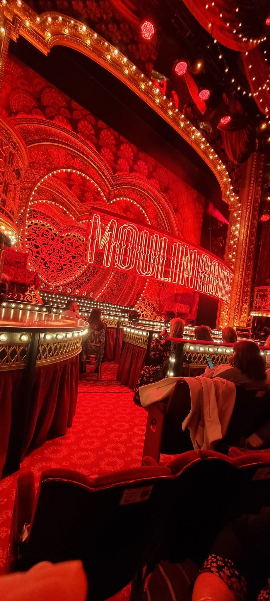 Close friends of mine will know that I spent a lot of my theatre time at the Piccadilly over the years Jersey Boys called it home. I love the space, and being really honest whenever I hear about a theatre being renovated to welcome a show, I’m slightly nervous as, in my experience these renovations can come at the expense of the really great wheelchair space (Victoria Palace, I’m looking at you, for example!), so when I phoned up to book my tickets for Moulin Rouge! and was told they had space in Row D of stalls, I snapped them up; and I can’t even fully articulate what it meant to me and how cool it was to experience this show from such a close vantage point.