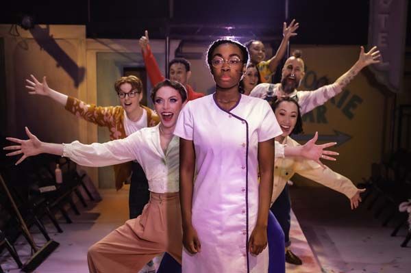 In their professional debut, I was utterly charmed by Jordan Broatch’s likeable, effervescent Hapgood, and likewise intrigued by Chrystine Symone’s straight-laced, repressed Fay. In terms of the score I think they both had the most difficult jobs having the more familiar songs, and they work incredibly hard to make them their own, and do so beautifully, adding depth and nuance to two characters that, perhaps on the face of things feel a little underdeveloped by the book. There’s a sweetness to their chemistry and the way they play off each other that I enjoyed a lot, especially during “With So Little To Be Sure Of”.