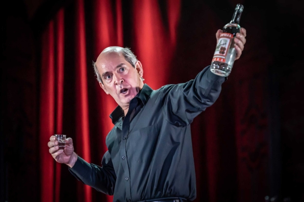 I adore plays where the design almost takes on a life of its own and becomes a character in itself; and becomes just as important as the words being spoken or action unfolding. I got that sense wholeheartedly here: Miriam Buether’s versatile thrust stage becomes both a bar and the catwalk where all the political heavyweights strut, accented beautifully by Jack Knowle’s lighting design – a gorgeous mix of colours and intensities. There’s one scene in particular that will stay with me for a long time on that score: no dialogue, sound, just Putin in front of a mirror adjusting his suit, trying out different poses as he readies himself for a speech. Adam Cork’s sound design and composition is also deeply atmospheric, clever in its scarcity.